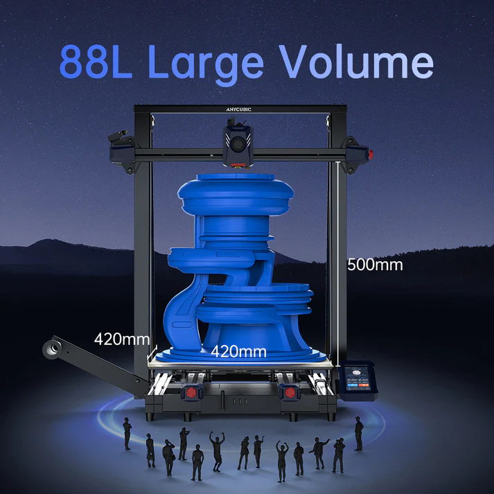 - Printing volume: A large build volume of 420 x 420 x 500 mm (approx. 88.2L), enabling the creation of large, single-piece models.