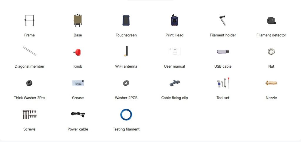 - Extruder: A direct extruder with a dual-motor, dual-Z-axis motion structure for efficient and precise material delivery.