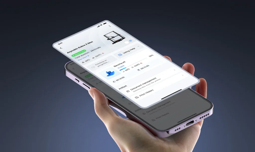Firmware 3.0.5+ upgrade enables Anycubic APP with online model library, real-time video supervision, slicing, time-lapse recording, and remote control.