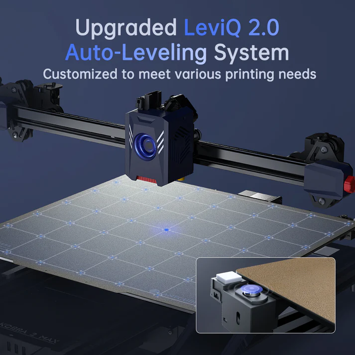 The LeviQ 2.0 system automatically maps 49 points on the bed and adjusts the Z-offset to ensure a perfect first layer.