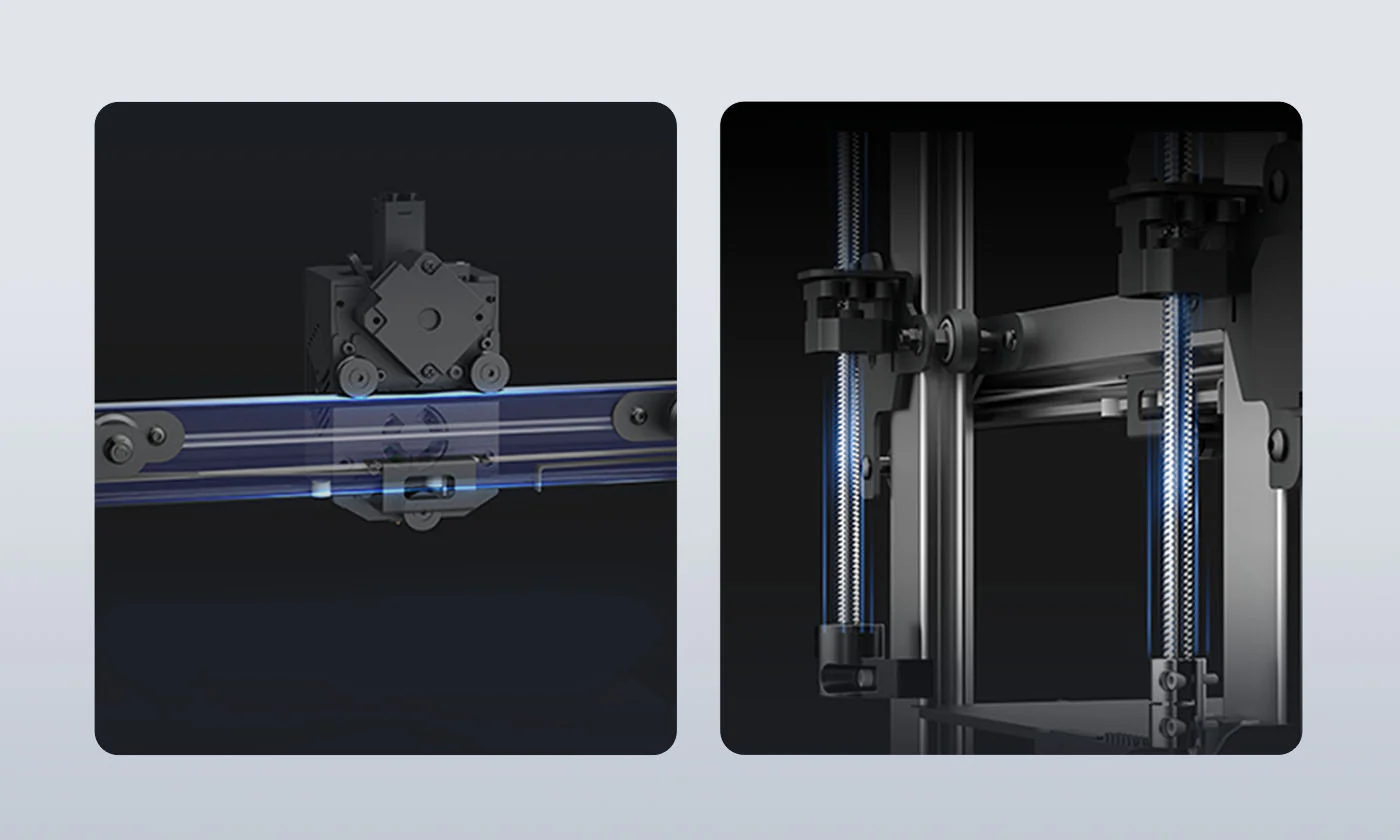• Stable mechanics: The printer features SG15 bearings and dual-axis core and dual Z-axis designs to minimize resistance and ensure stable performance, even at high speeds.