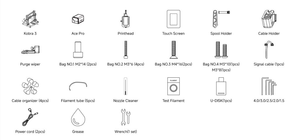 Package WeightKobra 3 – 12kg, ACE Pro – 5.7kg