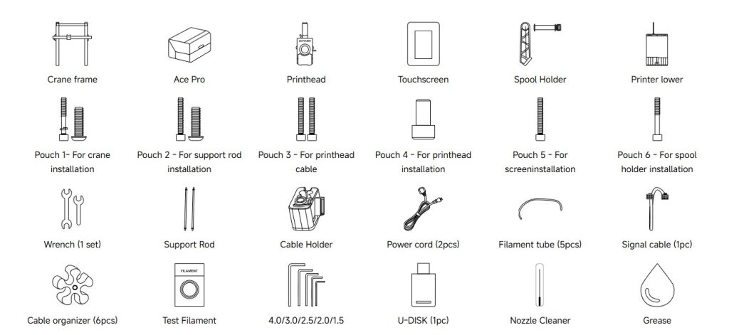 | Supporting Filaments | PLA/PETG/TPU (TPU is not compatible with the ACE Pro) | PLA/PETG/TPU | |