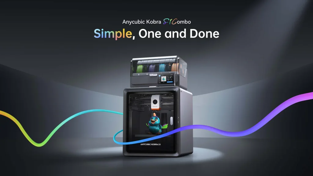 The Anycubic Kobra S1 is a high-speed, fully enclosed CoreXY 3D printer designed for both beginners and experienced users. The “Simple, One and Done” marketing refers to its ease of setup, high reliability, and intelligent features that simplify the printing process. The Combo version includes the Anycubic ACE Pro color engine for multicolor printing.