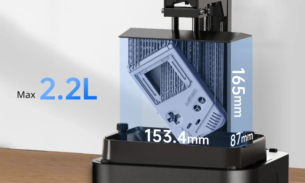 • Compact Build Volume: With a build volume of 153.4 x 87 x 165 mm (2.2 liters), the printer offers a sufficient space for printing miniatures, jewelry, prototypes, and other small to medium-sized objects.