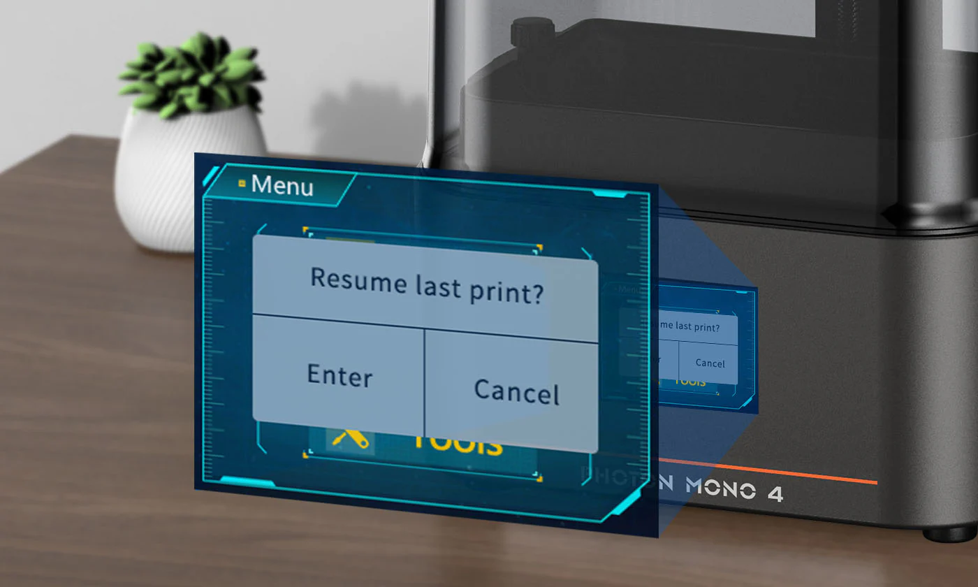 • User-friendly Function】The 4-point leveling method is ideal for beginners, after the first leveling and tightening the 4 screws, no need to repeat leveling. Photon mono 4 can resume printing when power is restored, effectively reducing material and time wastage.