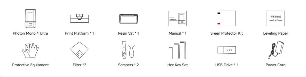| Build Platform Laser-engraved aluminum build plate | Z-axis Single linear rail with 20 μm accuracy | Release Film ACF film | Resin Vat ≤0.39L |