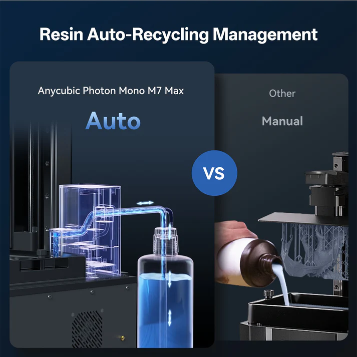 The Anycubic Photon Mono M7 Max is a large-format resin 3D printer for both hobbyists and professionals, featuring a 14.7L build volume and intelligent resin management. It is the successor to the Photon Mono M3 Max and was released in 2024–2025. The slogan “Bigger, Better, Beyond” refers to its larger print volume, improved features, and upgraded performance.