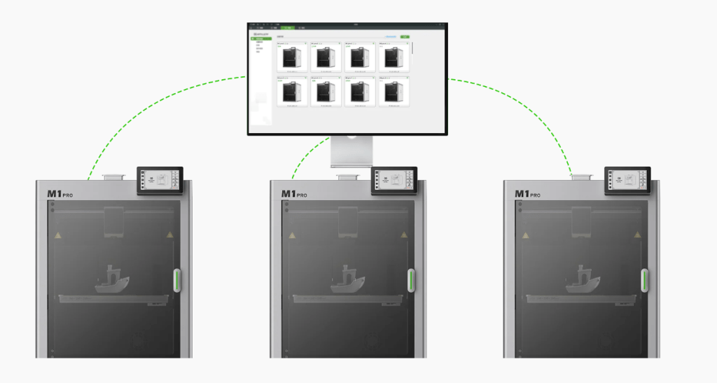 With the M1 Pro, managing your prints has never been easier. Whether you have one printer or multiple, you can control them all from a single device. Enjoy Wifi transmission, SD card support, touchscreen operation, and pc software integration for a flexible and convenient printing experience, anytime, anywhere.