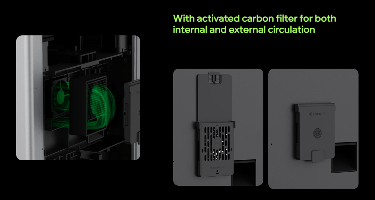 Printing advanced materials like ABS or ASA inside an enclosure can get… smelly and particle-heavy. Artillery tackles this head-on with a smart HEPA and Activated Carbon filtration system. This diligently captures fine particles and neutralizes fumes, making your workspace significantly safer and more pleasant. Furthermore, a built-in camera allows you to monitor your print remotely, providing peace of mind and enabling you to catch potential issues before they escalate into disasters.