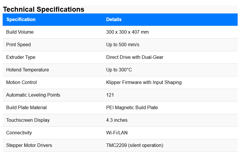 Target User: This printer is ideal for users who need a large build volume and are looking to upgrade to higher speeds without the hassle of a DIY setup. It’s perfect for both experienced hobbyists and professionals who desire an out-of-the-box experience with Klipper’s advanced capabilities.