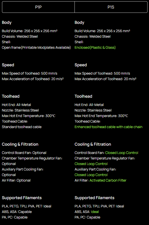 Spending slightly more on the P1S gets you everything plus an enclosure—honestly, it’s the smarter buy for most people.