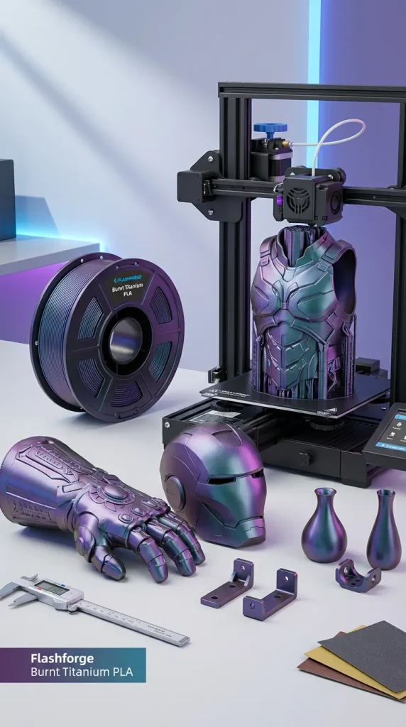 If you want your prints to have a unique and mesmerizing look, Flashforge Burnt Titanium PLA is a must-try. This filament creates a visual effect that helps your models stand out.