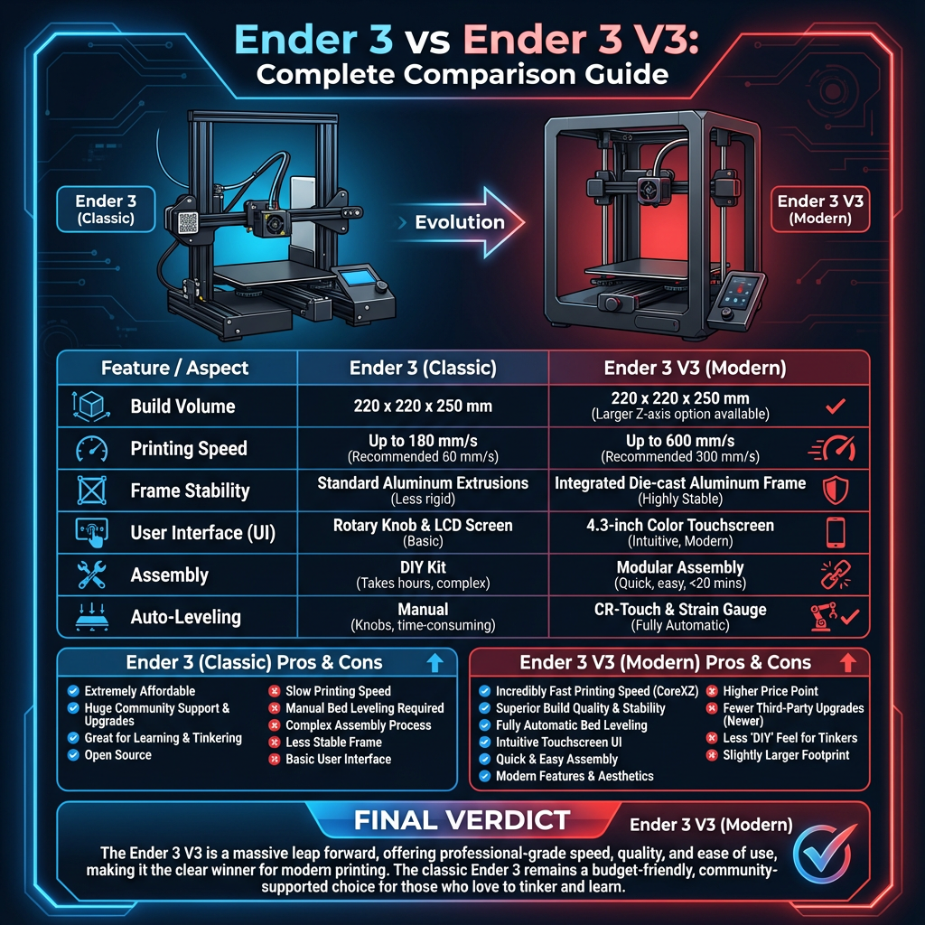 Ender 3 vs Ender 3 V3: Complete Comparison Guide