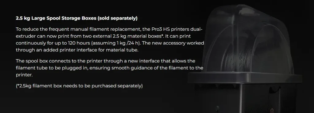 - Large Spool Support (5 kg total): Reduces the frequency of material loading.