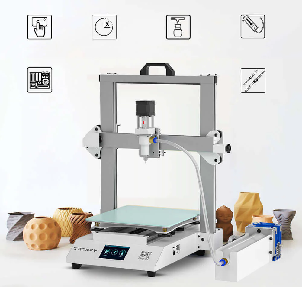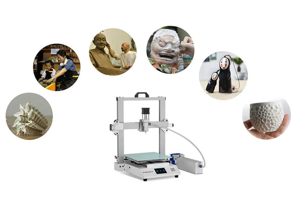 The Tronxy Moore 2 Pro Ceramic 3D Printer, featuring clay 3D printing with a 255mm feeding system powered by an electric putter, showcases cutting-edge 3D printing technology from Tronxy.
