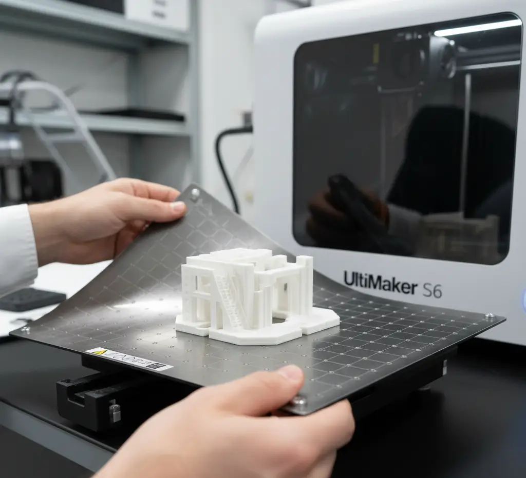 The UltiMaker S6 is a professional dual-extrusion 3D printer designed for high-quality, engineering-grade parts and prototypes.
